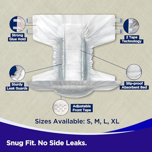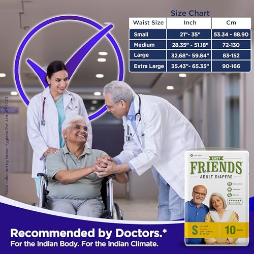 Friends Easy Adult Diapers Tape Style - 120 Count (Small) with odour lock, Unisex, Leakproof, Wetness Indicator and Anti-Bacterial Absorbent Core- Waist Size 22.44-39.37 inch; 57-100 cm