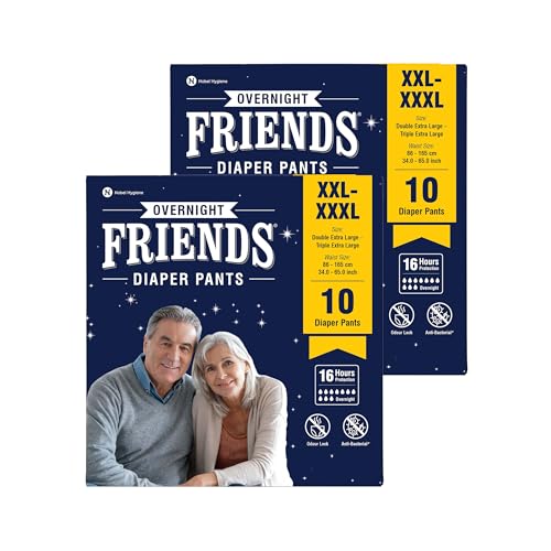 Friends Overnight Adult Diapers Pants Style - 20 Count (Double Extra Large) with odour lock, Unisex, Leakproof, Elastic Waist and Anti-Bacterial Absorbent Core - Waist Size 34-65 Inch; 86-165 cm