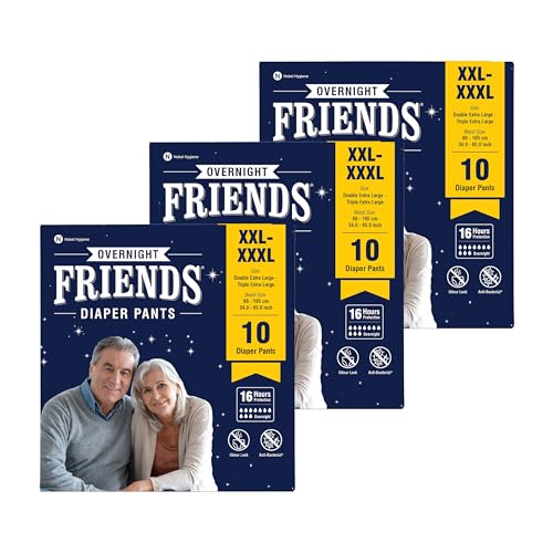 Friends Overnight Adult Diapers Pants Style - 30 Count (Double Extra Large) with odour lock, Unisex, Leakproof, Elastic Waist and Anti-Bacterial Absorbent Core - Waist Size 34-65 Inch; 86-165 cm