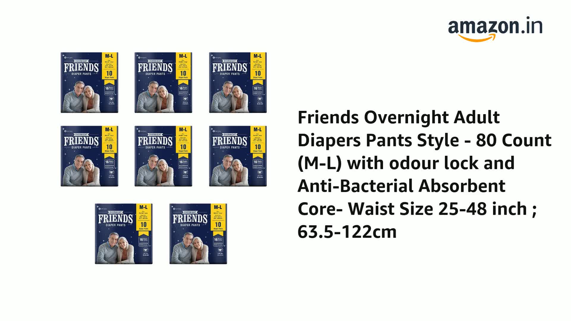 Friends Overnight Adult Diapers Pants Style - 80 Count (Medium) with odour lock, Unisex, Leakproof, Elastic Waist and Anti-Bacterial Absorbent Core - Waist Size 25-48 inch; 63.5-122 cm