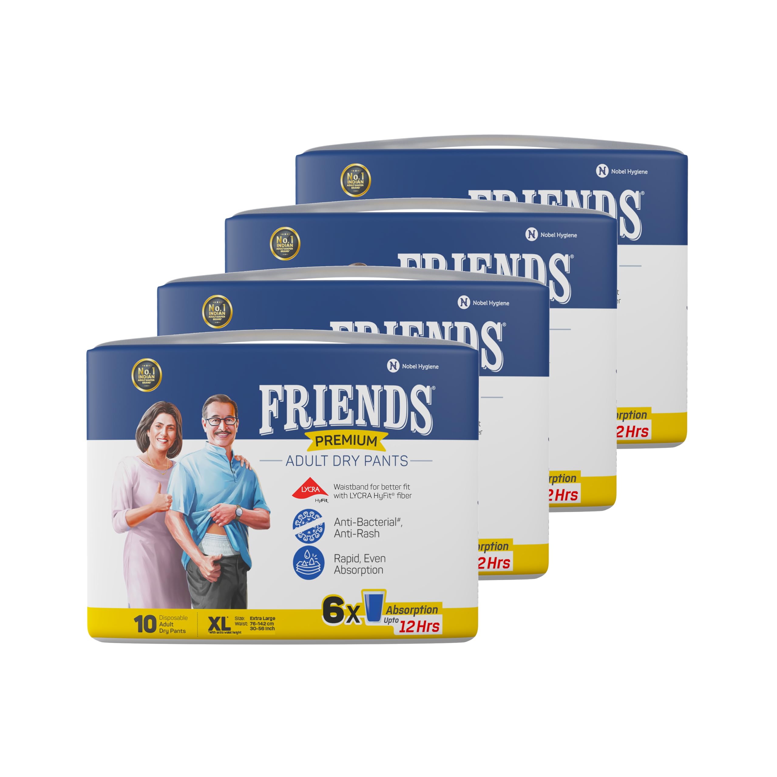 Friends Premium Adult Diapers Pants Style - 40 Count (Extra Large) with odour lock, Unisex, Leakproof, Elastic Waist and Anti-Bacterial Absorbent Core - Waist Size 30-56 inch; 76-142 cm