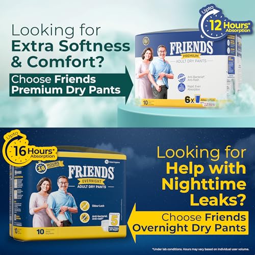 Friends Adult Diapers extra-large size pant style with 12 hours of protection are also available in sizes M and L.