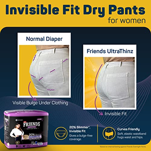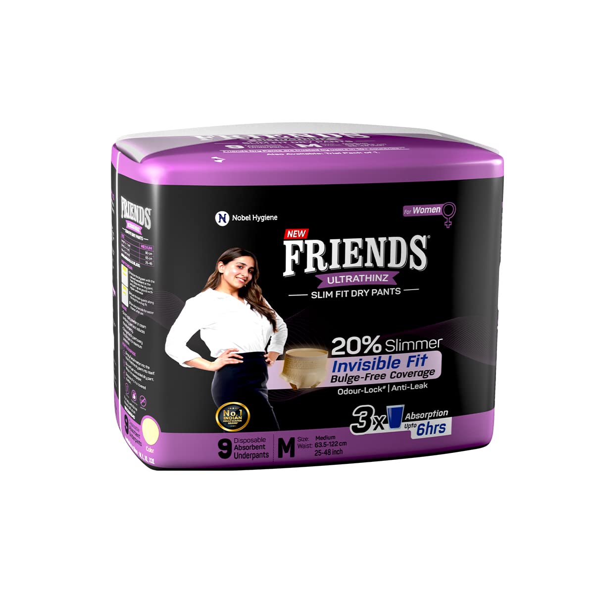 HomeHealth & PersonalPersonal CareAdult DiapersFriends UltraThins Slim Fit Adult Diapers (Dry Pants) for Women - Medium – 9 Count - with thin design, peach colour, and anti-rash - Waist Size 25-48 Inch ;6 3.5-122 cm