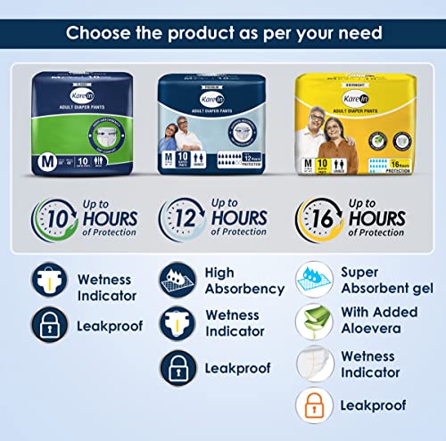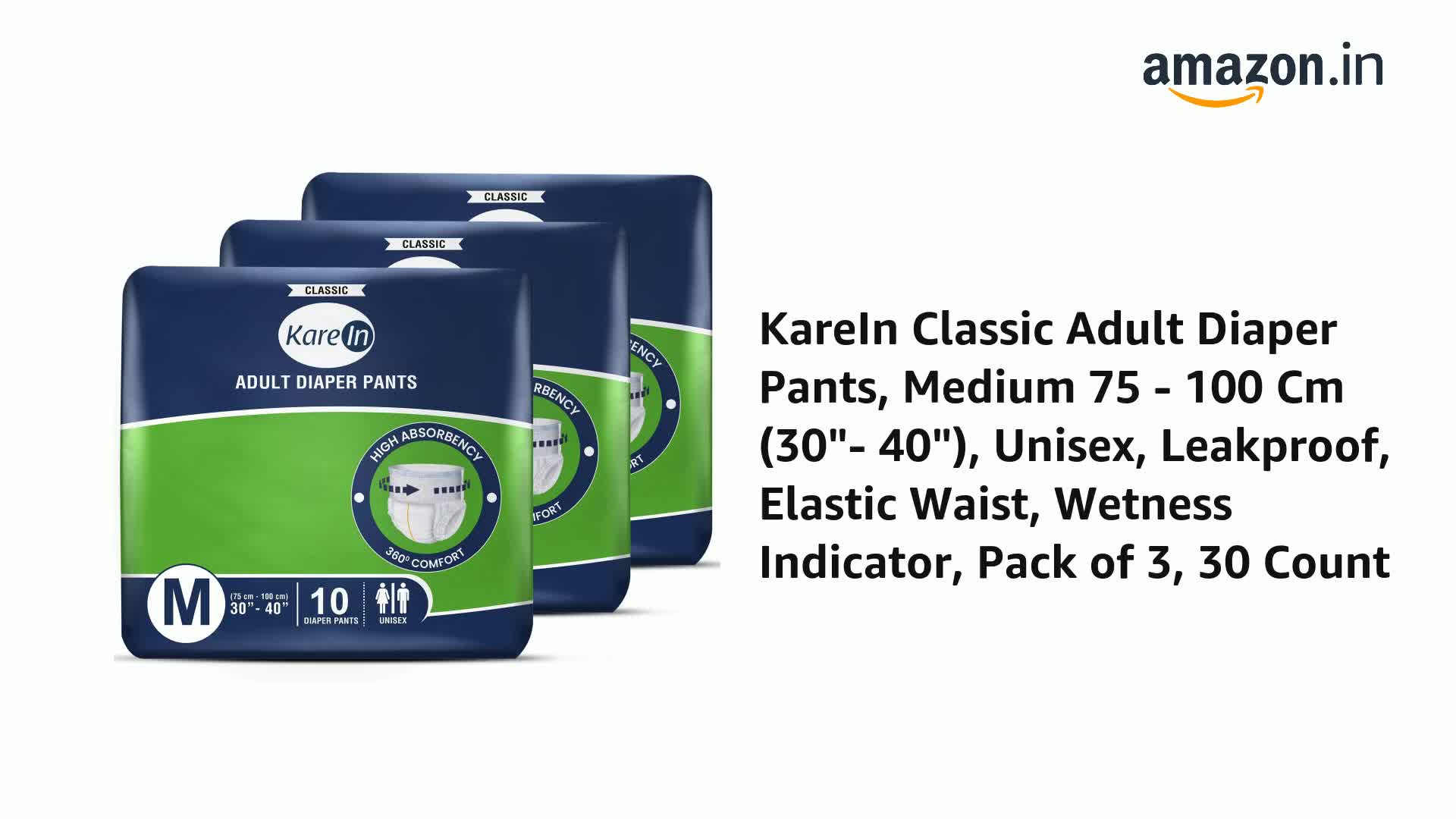 KareIn Classic Adult Diaper Pants, Medium 75 - 100 Cm (30"- 40"), 30 Count, Unisex, Leakproof, Elastic Waist, Wetness Indicator, Pack of 3
