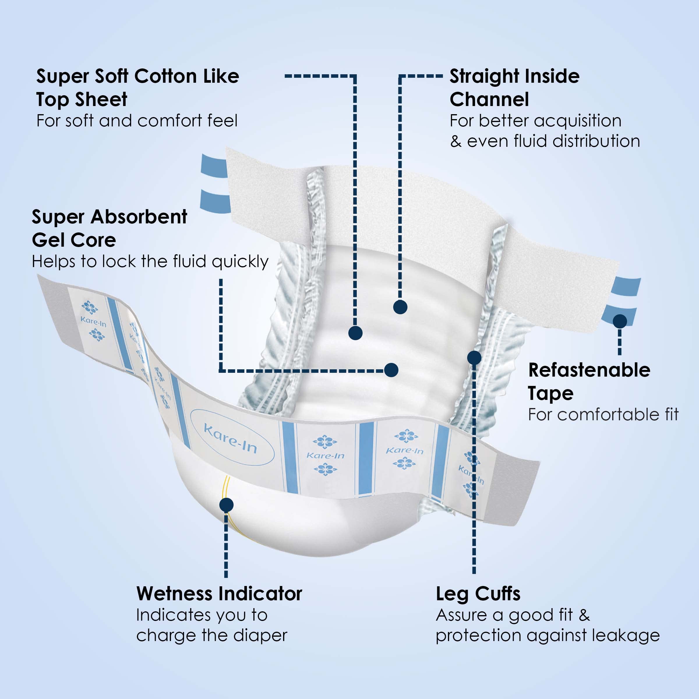 KareIn Classic Adult Diapers Extra Large Waist Size 127-165 Cm (50"-65") 10 Count Tape Style Unisex High Absorbency Leak Proof Wetness Indicator