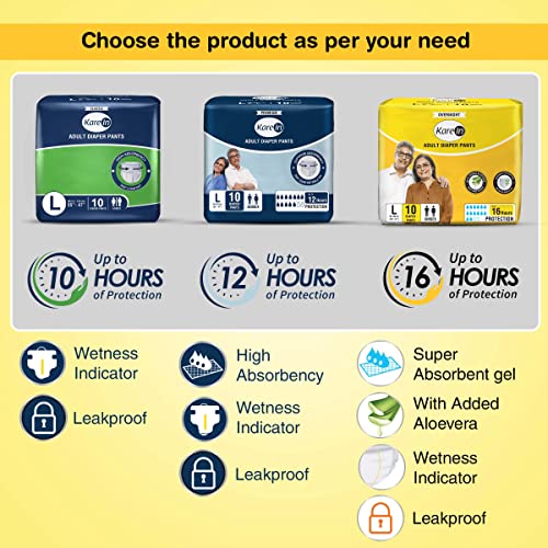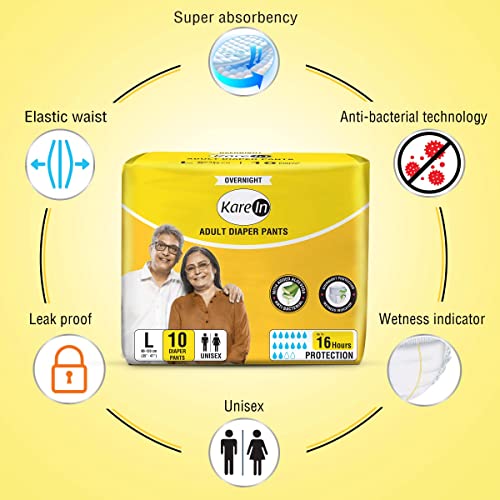 KareIn Overnight Adult Diaper Pants, Large 90-120 Cm (35"- 47"), 30 Count, Unisex, Leakproof, Elastic Waist, With Aloe Vera Lotion, Anti-Bacterial, ADL, Wetness Indicator, Pack of 3