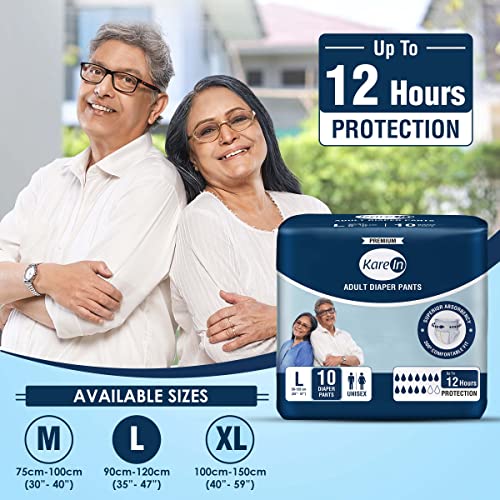 KareIn Premium Adult Diaper Pants Large 90 - 120 Cm (35"- 47") Unisex Leakproof Elastic Waist Wetness Indicator 10 Count