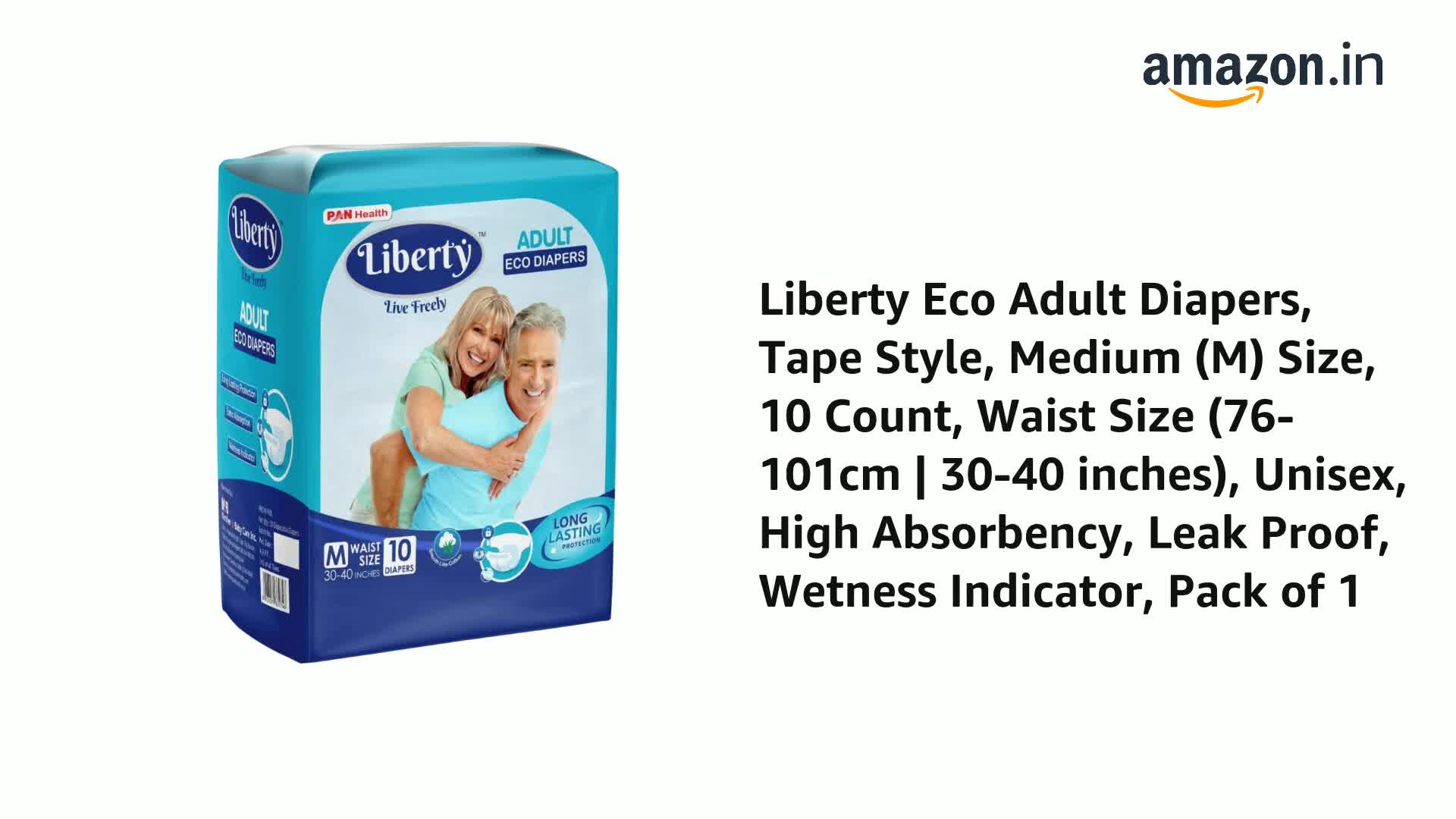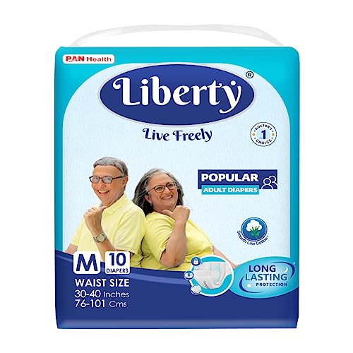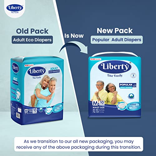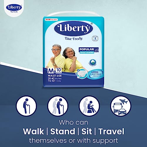 Liberty Popular Adult Diapers, Tape Style, Medium (M) Size, 10 Count, Waist Size (76-101cm | 30-40 inches), Unisex, High Absorbency, Leak Proof, Wetness Indicator, Pack of 1
