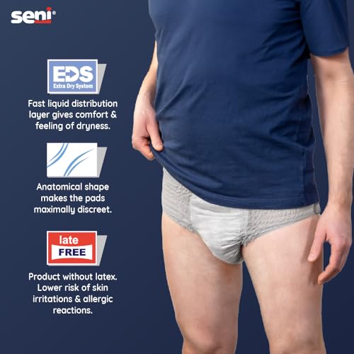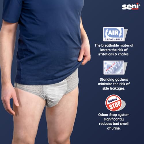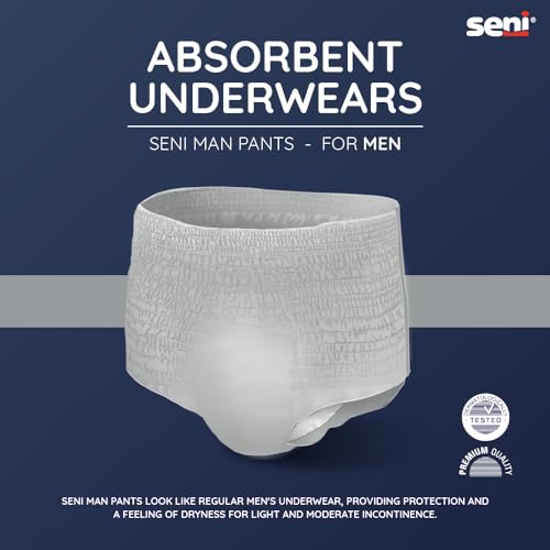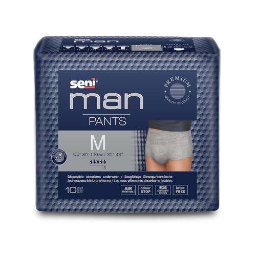 Seni Man Bladder Control Pants for Men | Light Incontinence | Breathable | Extra Dry System | latex free | Disposable Absorbent Underwear | Odour Stop | Dermatologically Tested | Size Medium | Waist Size 31" - 43" (80 cm - 110 cm) | Pack of 1 | 10 Pcs