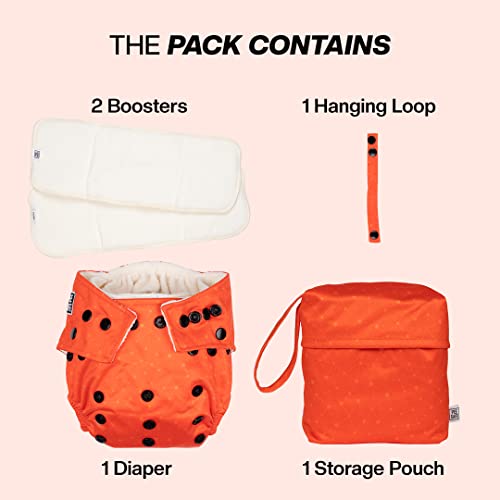 PEESAFE Reusable Baby Diaper|Washable&Adjustable Design|Comfortable Soft Fabric|5 Layer Protection Kit|Leak Proof|2 Booster Pads|Red Web|1 Set