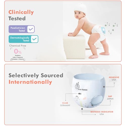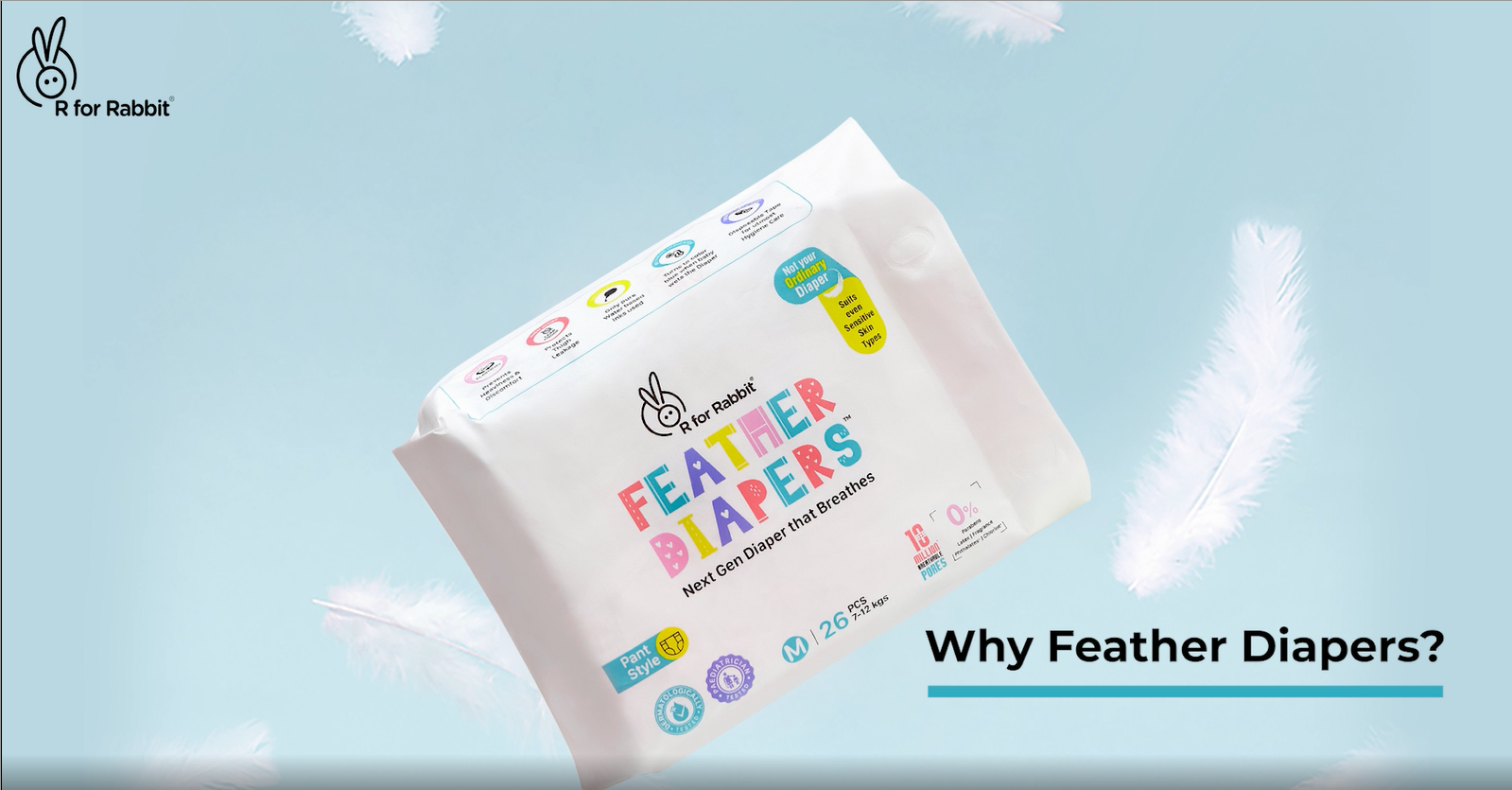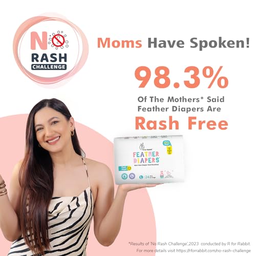Breathable Diaper of Medium Size: R for Rabbit Feather Diapers for M size having 10 Million* Breathable pores which allows the air to easily pass through making the diapers highly breathable and acting as a rash guard for your by instantly locking moistur