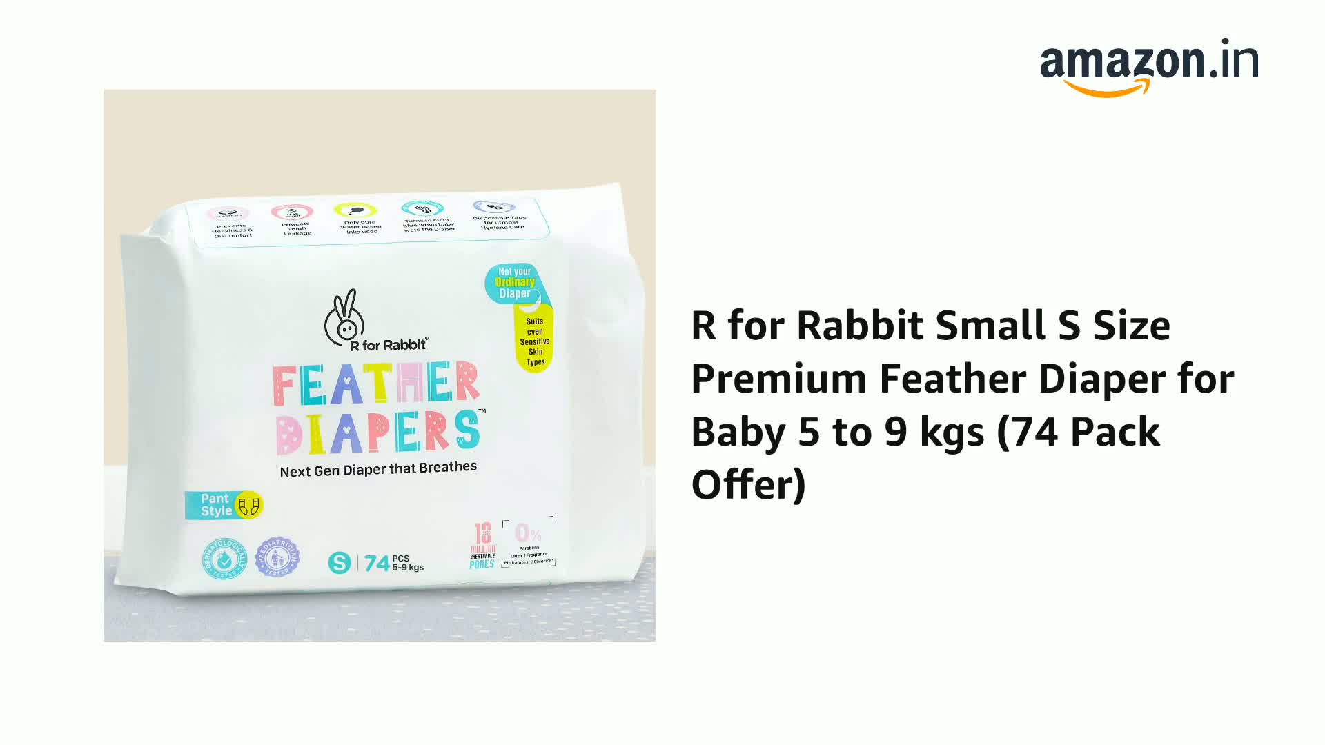 R for Rabbit Small S Size Premium Feather Diaper for Baby 5 to 9 kgs (74 Pack Offer)