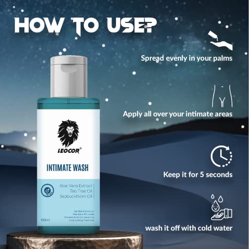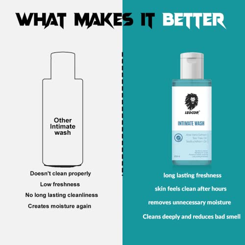 HomeHealth & PersonalPersonal CareMen's GroomingLeocor Intimate Wash for Men | Anti Itch Anti Odour | Better Private Parts Hygiene| with pH Balanced Intimate Hygiene Wash with Aloe Vera Tea Tree