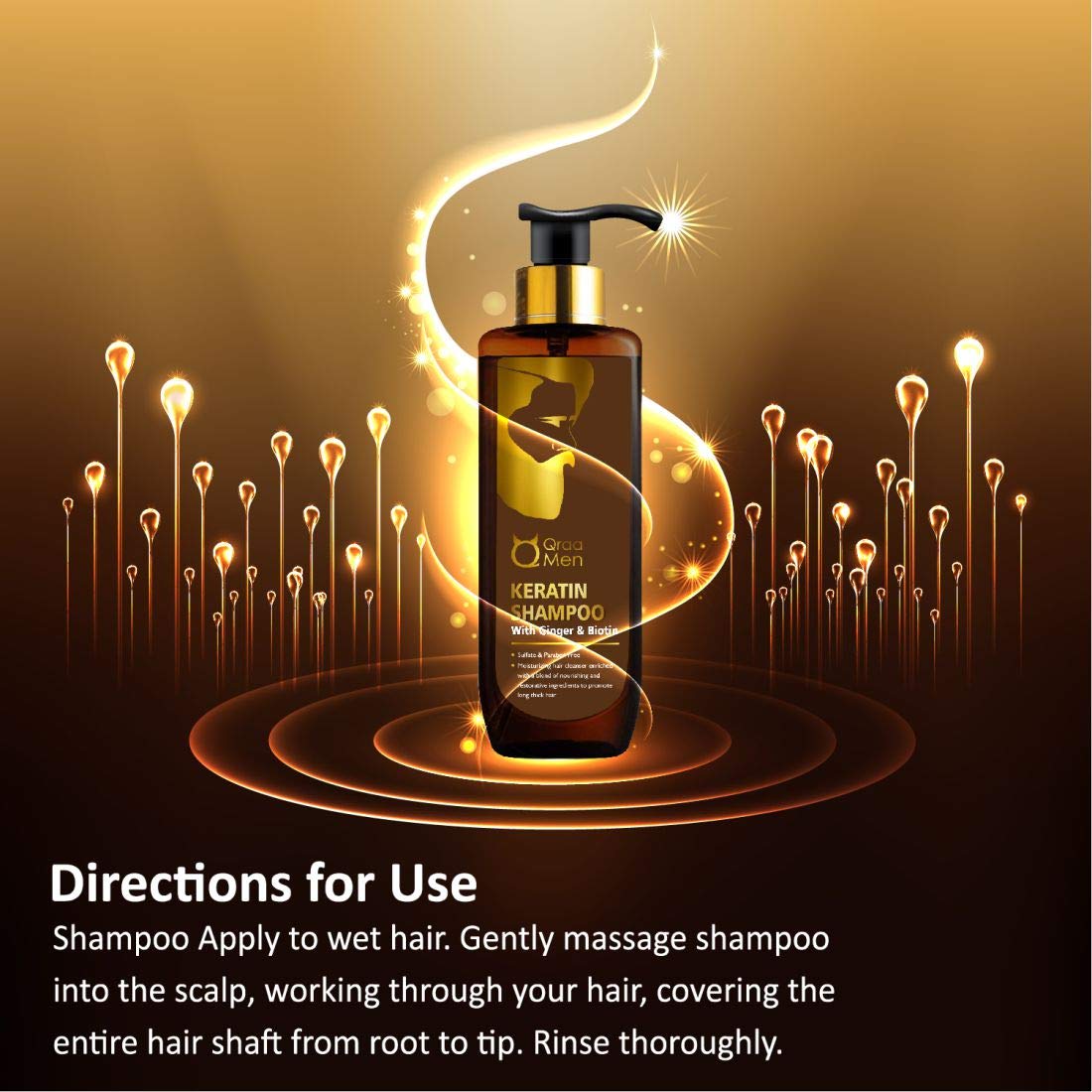 Qraa Men Keratin Shampoo With Ginger & Biotin for Nourished and Thick Hair- Sulfate & Paraben Free 200ml Shampoo