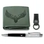 Urban Forest Zylo RFID Blocking Vintage Leather Wallet + Keychain + Pen Combo Gift Set for Men, Vintage Green, RFID