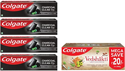 Colgate Charcoal Clean Black Gel Toothpaste,& Colgate Swarna Vedshakti Ayurvedic Cavity Protection, Bad Breath Treatment Toothpaste - 400gm