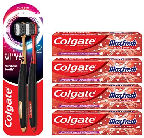 HomeHealth & PersonalPersonal CareOral CareColgate MaxFresh Bad Breath Toothpaste & Visible White O2 Toothbrush, Red Gel Paste With Menthol For Super Fresh Breath, Spicy Fresh, 600g (150g x 4), 2pcs