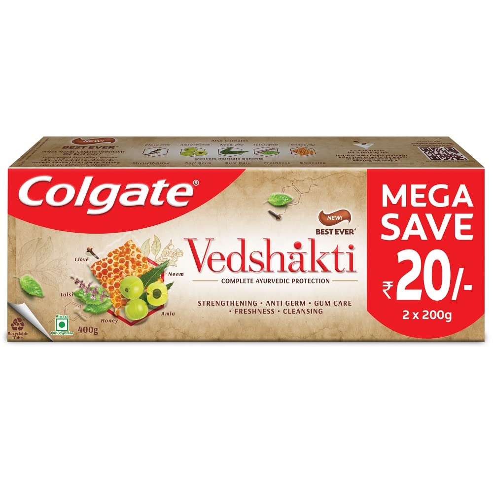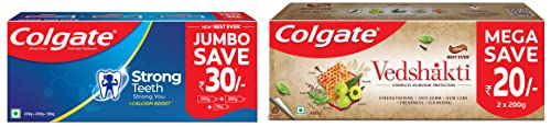 Colgate Strong Teeth Cavity Protection Toothpaste, Colgate Toothpaste, 500gm Saver Pack, India's No.1 Toothpaste & Swarna Vedshakti Ayurvedic Cavity Protection, Bad Breath Treatment Toothpaste - 400gm