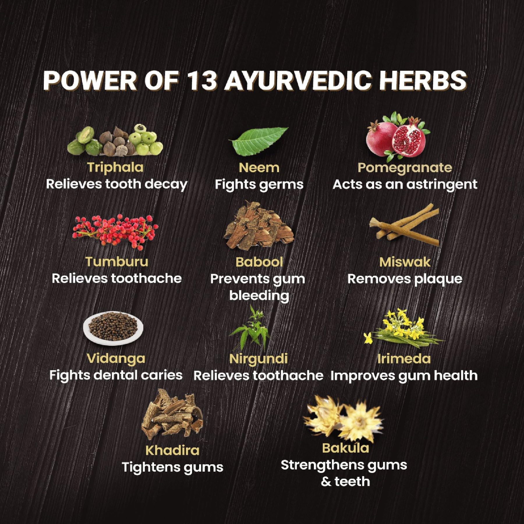 CLINICALLY TESTED TO REDUCE GUM PROBLEMS: It is packed with 13 traditional Ayurvedic herbs known to help reduce gum bleeding and swelling fight stubborn bad breath and prevent conditions like gingivitis and pyorrhea/periodontitis. It effectively removes p