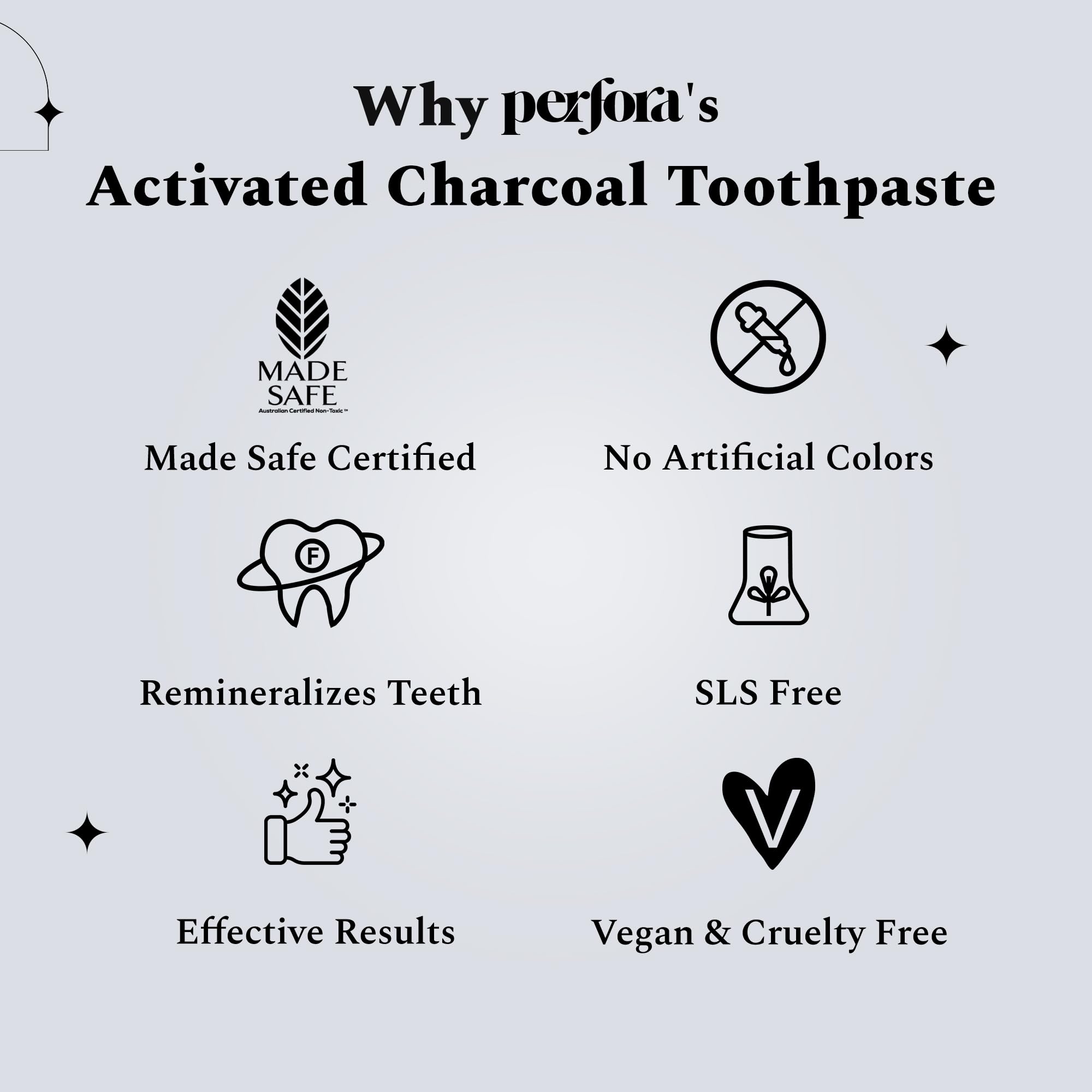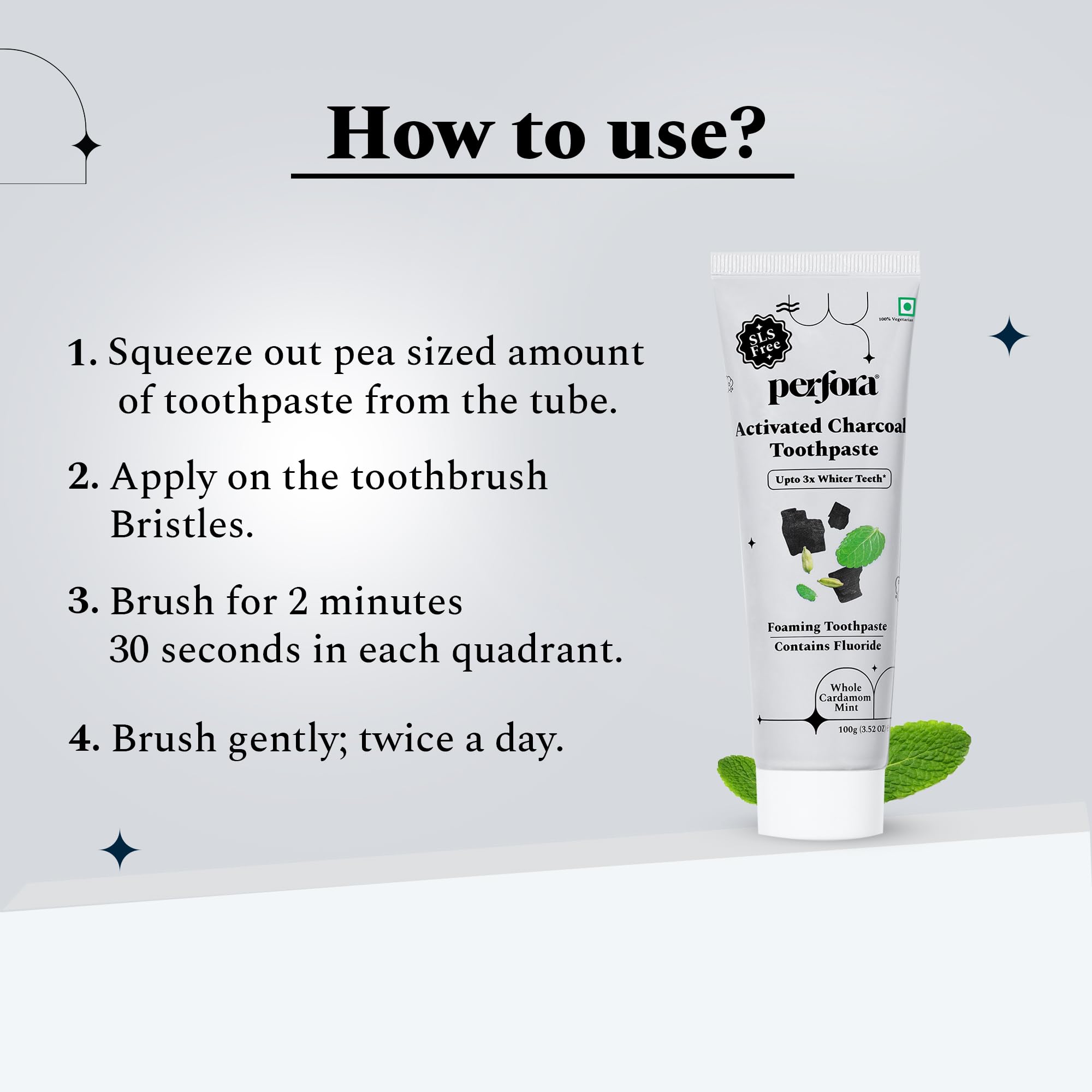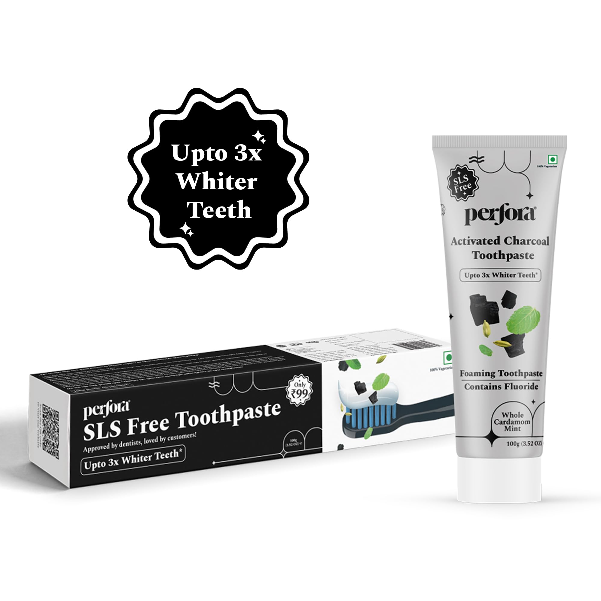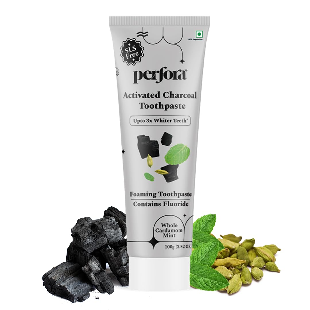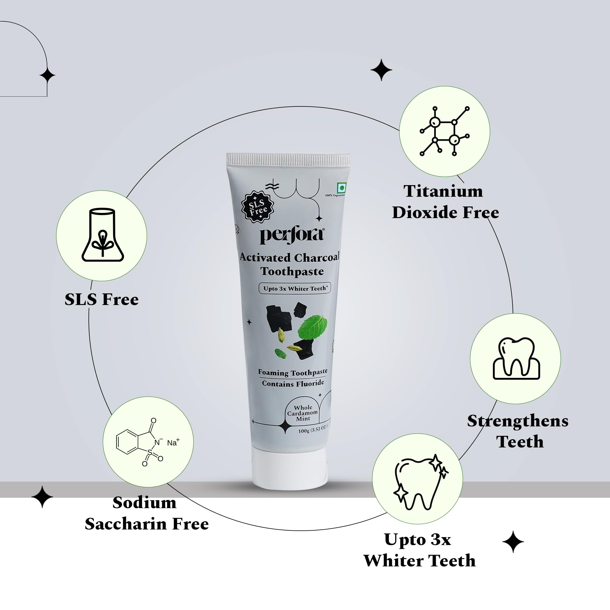 Perfora Activated Charcoal Toothpaste - 100g | SLS & Titanium Dioxide Free | Bamboo Charcoal For 3x Whiter Teeth | Enamel Safe Teeth Whitening Toothpaste for Men & Women | Cardamom Mint