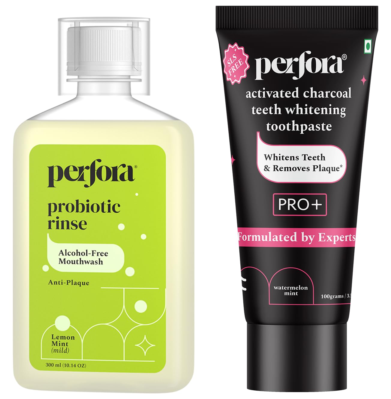 Perfora Teeth Whitening Kit | Activated Charcoal Teeth Whitening Toothpaste | Alcohol-Free Mouthwash - Lemon Mint | Vitamin Enriched SLS & Fluoride Free | SLS Free & Made Safe Certified | Pack of 2