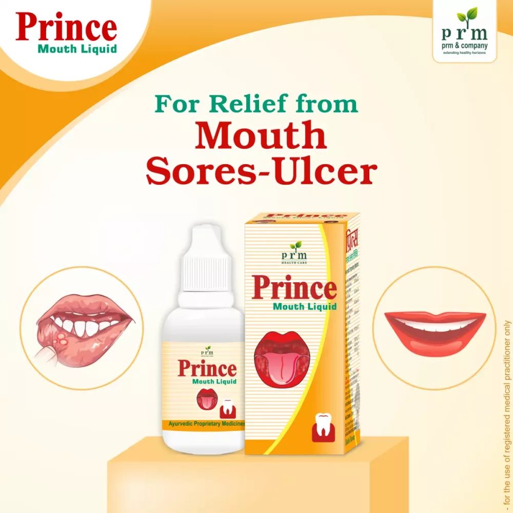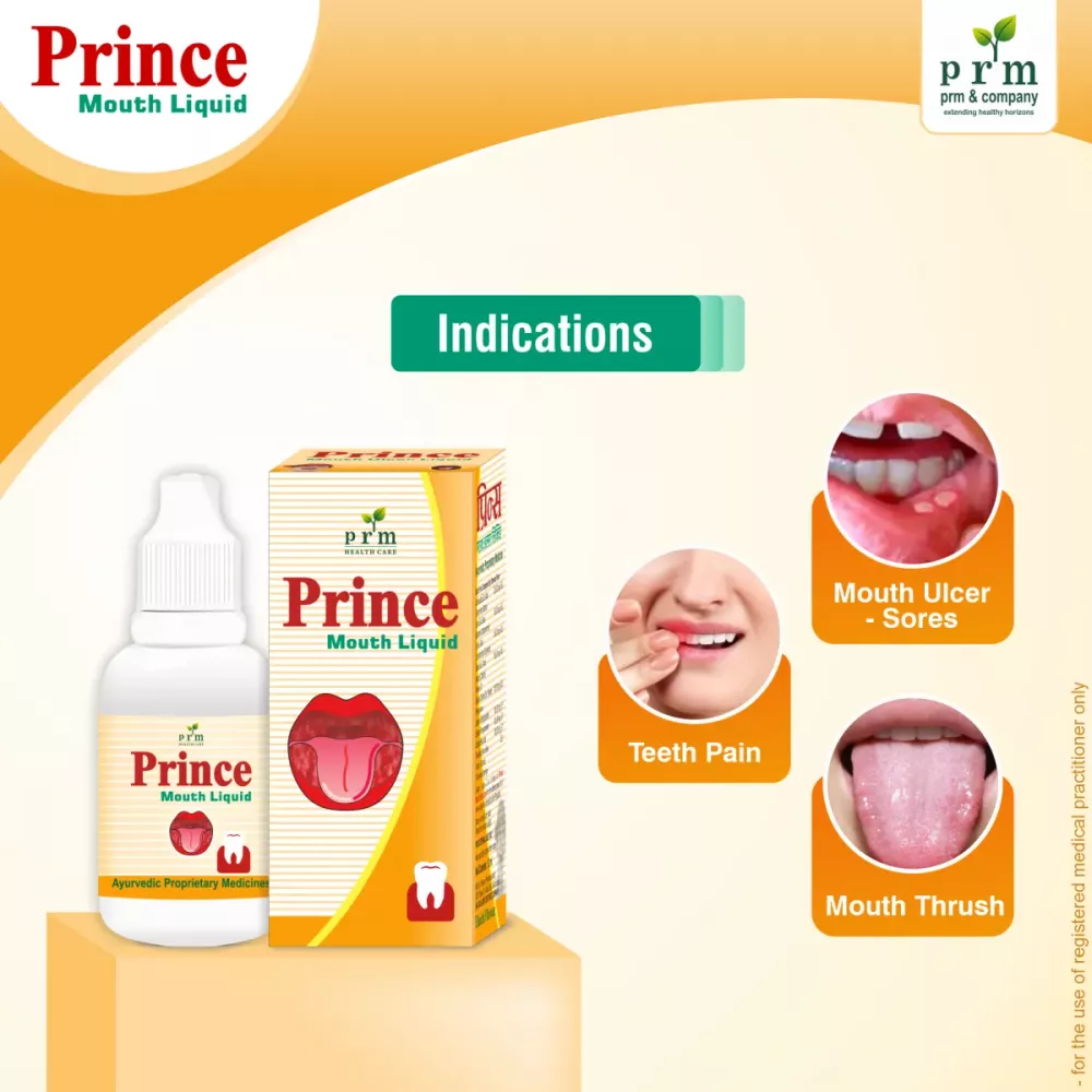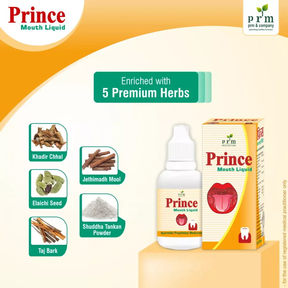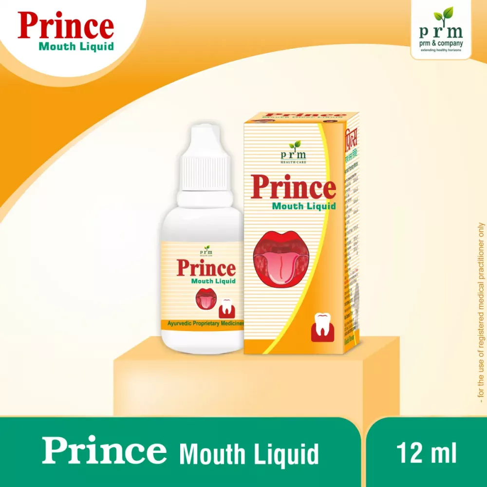 PRM Prince Mouth Liquid 12ml (Pack of 2) Herbal Mouth Ulcer Relief With Jethimadh, Ilaichi & Khadir
