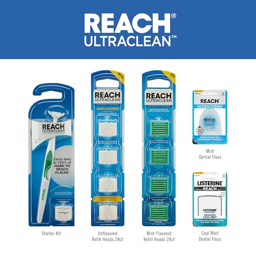 Easy to Use: Each pack includes 28 disposable snap-on mint flavored flosser refill heads for use with REACH (formerly Listerine) Ultraclean Access Flosser an oral care tool that makes flossing as easy as brushing