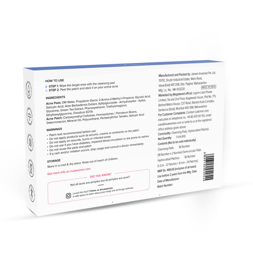 Nua Clarifying Acne Patch Kit | 100% Hydrocolloid & Salicylic Acid Spot Acne Pimple Patches for Men & Women| Clear acne overnight and prevent acne scars| 36 Pcs Salicylic Acid Acne Patches & 36 Pcs Cleansing Pads