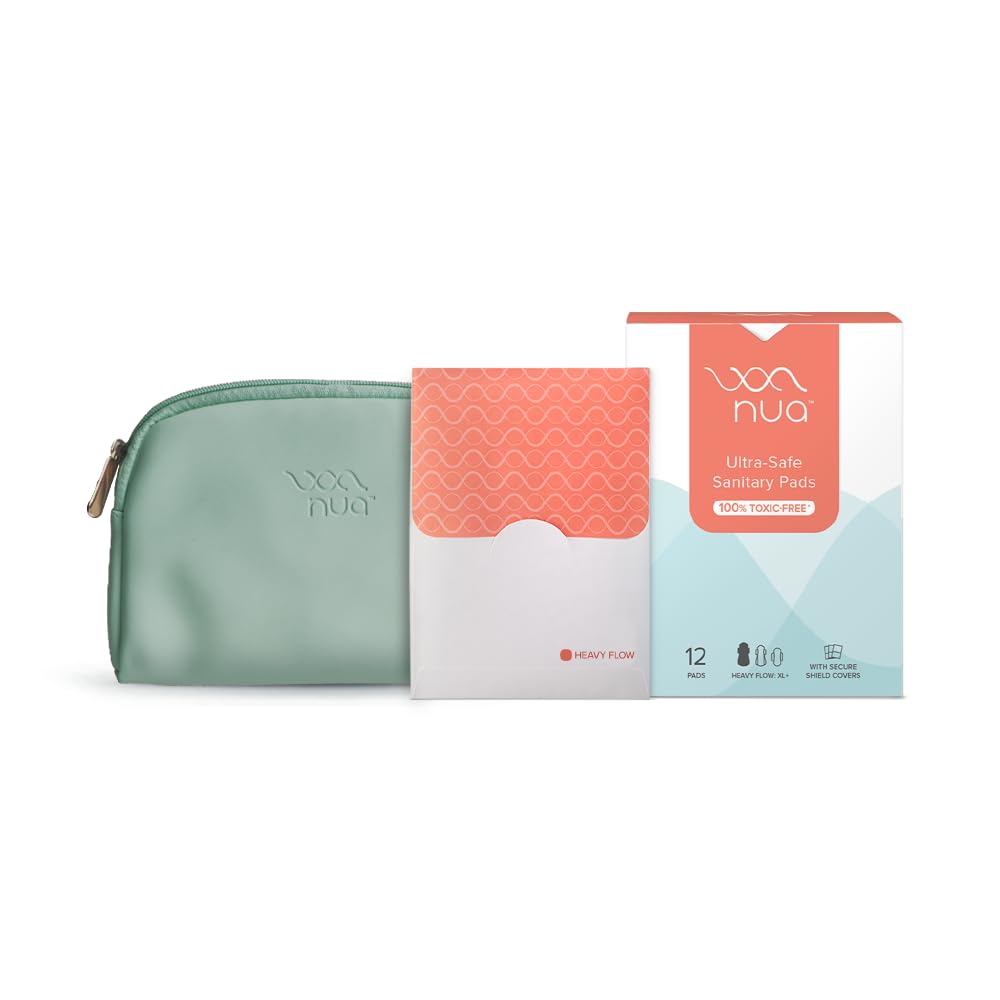 Nua Combo - 12 Ultra Safe Pads with Disposable Covers | upto 100% Leak Protection | Suitable for Heavy Flow | Wider back | Comfortable | Rash Free + Vegan Leather Pouch