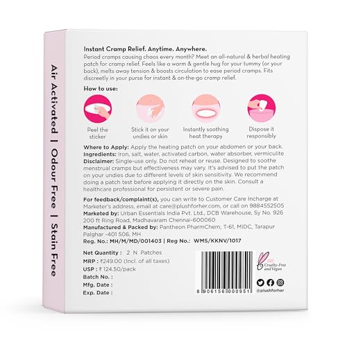 Plush 8+ Hour Instant Cramp Relief Heating Patch (Pack of 2) | 100% Herbal & Safe | Air Activated | No Side Effects