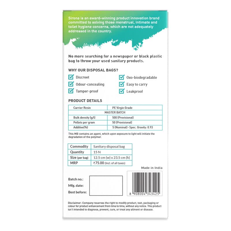 SUPER-SEALED: The Sirona Sanitary Disposal Bags come with built-in glue which seals perfectly. The leak-proof design keeps the bacteria and wetness where it belongs making your surroundings safe and hygienic.