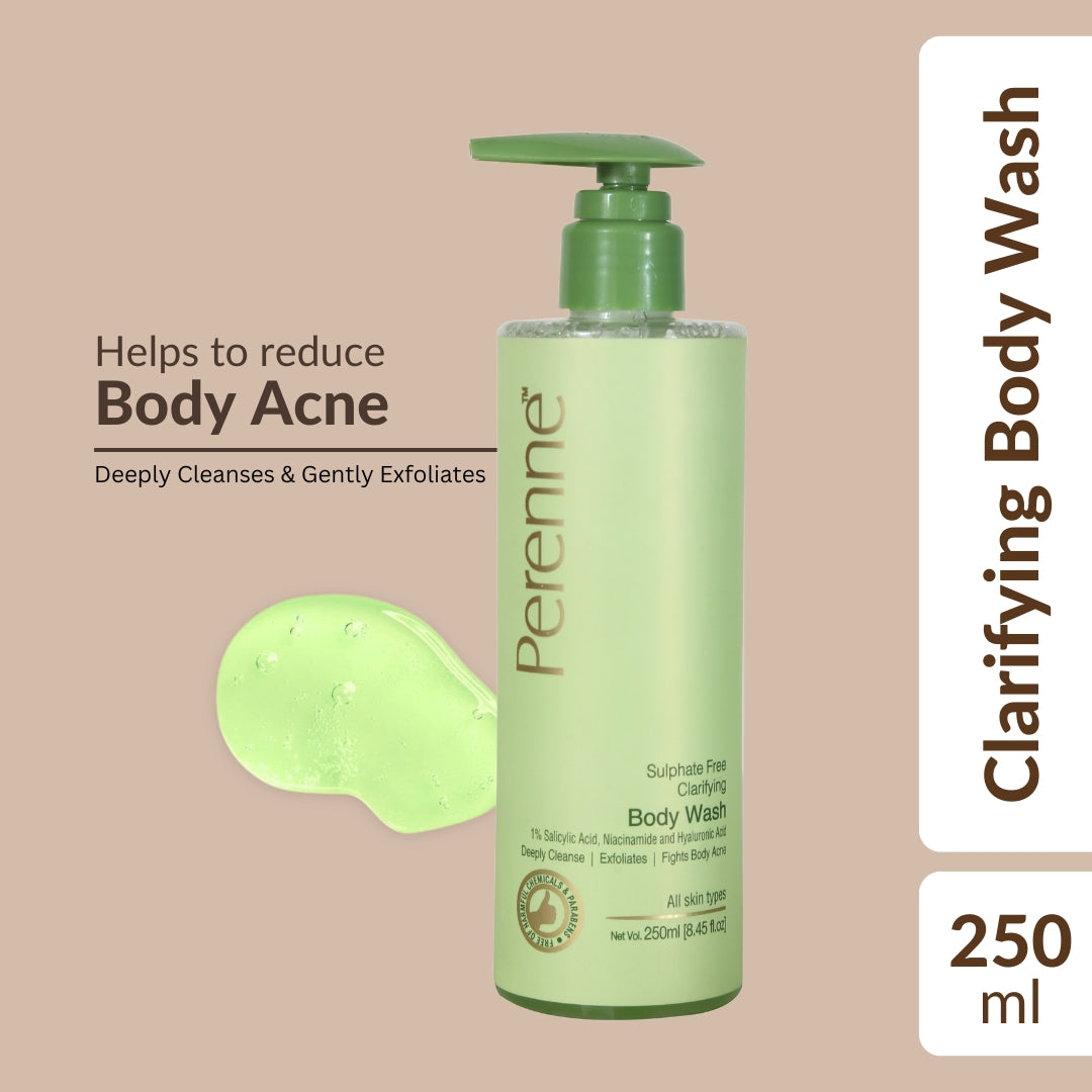 Perenne Sulphate free Clarifying Body Wash with 1% Salicylic Acid, Niacinamide and Hyaluronic Acid (250 ml)
