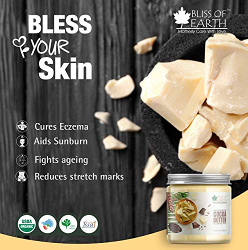 HIGHEST PREMIUM GRADE: Bliss of earth 100% organic Cocoa Butter is therapeutic grade and is best with unrivaled quality. Unlike other Cocoa Butters bliss of earth 100% pure Cocoa Butter is unrefined no added fragrance hexane free preservative free chemica