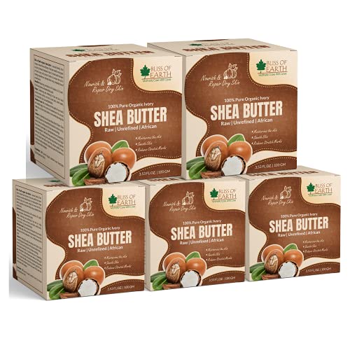 Bliss of Earth 100% Pure Organic Ivory Shea Butter | Raw | Unrefined | African | 5x100GM | Great For Face Skin Body Lips DIY products|