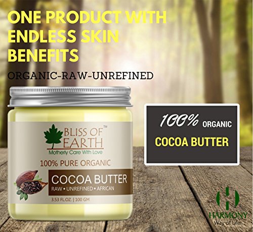 HIGHEST PREMIUM GRADE: Bliss of earth 100% organic Cocoa Butter is therapeutic grade and is best with unrivaled quality. Unlike other Cocoa Butters bliss of earth 100% pure Cocoa Butter is unrefined no added fragrance hexane free preservative free chemica