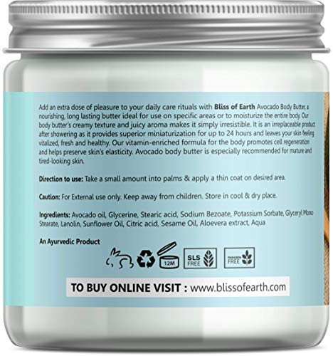 Bliss of Earth Rejuvenating Avocado Body Butter With Goodness of Shea Butter For Tired Looking Skin