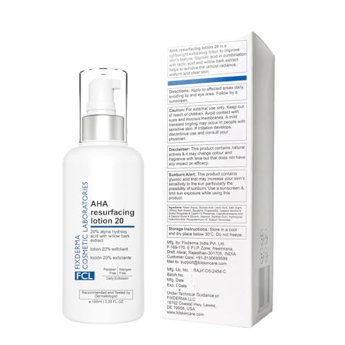 HomeHealth & PersonalSkin CareBody CareBody Lotion & CreamFIXDERMA COSMETIC LABORATORIES FCL Glycolic Acid AHA 20 Lotion For Body And Face | Dead Skin Remover | Paraben Free AHA Exfoliating Lotion For Dry, Itchy And Rough Skin - 100Ml
