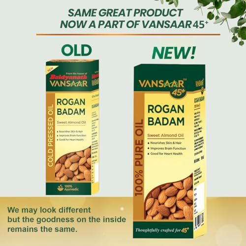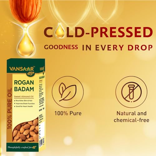 Vansaar 45+ Rogan Badam Oil - 100ml | 100% Pure & Natural | Sweet Almond Oil for Skin & Hair Nourishment | Cold Pressed Oil made with Californian Almonds