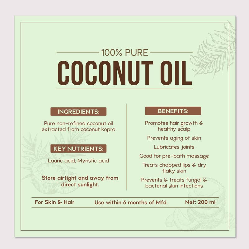 Nat Habit 100% Pure Coconut Oil For Skin & Hair, Non-Refined, LLP Free, Chemical Free & Preservative Free - 200 ml