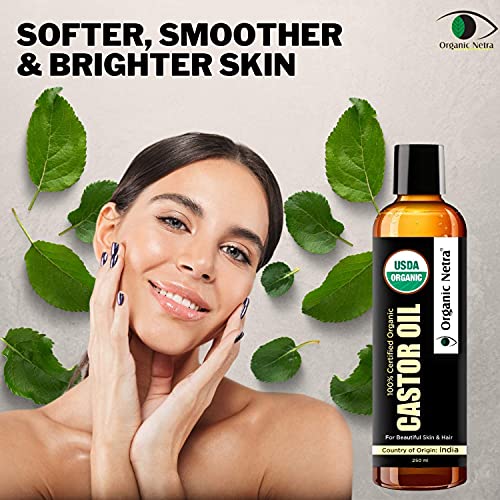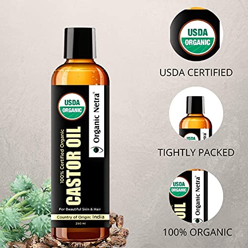 [USDA CERTIFIED ORGANIC CASTOR OIL]: Organic Netra Castor oil is extracted from organically cultivated lush fields in India. Pure organic castor oil is -pressed with the least of natural ingredients and preservation of natural nutrients. Organic Netra is