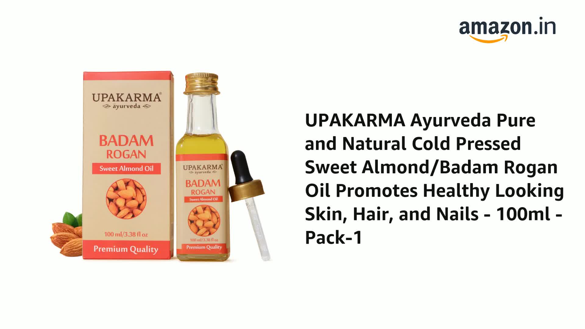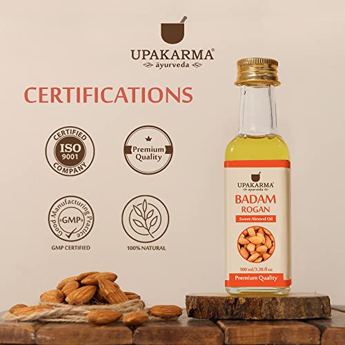 UPAKARMA Badam Oil | Pure and Natural Cold Pressed Sweet Almond/Badam Rogan Oil | Promotes Skin & Hair Health, 100ml - Pack of 1
