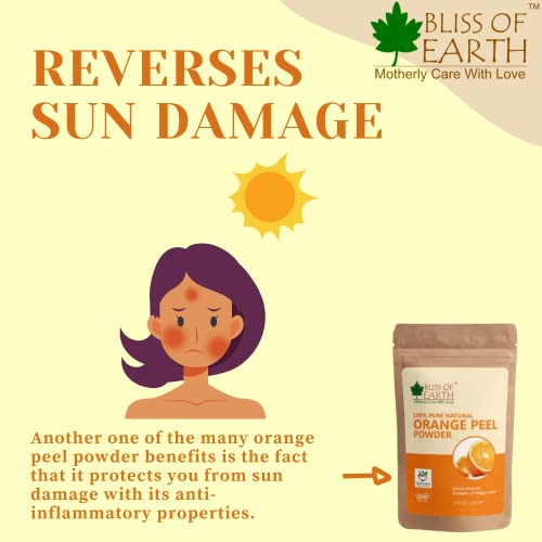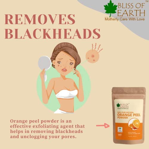 Bliss of Earth™ 100% Pure Orange Peel Powder | 100GM | Best For Naturally Glowing Skin | Natural Sun Tan Remover & Exfoliator | Hair Conditioning & Skin Care |