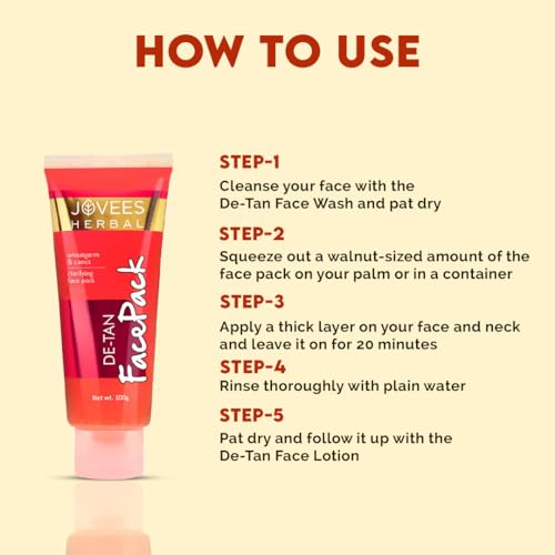 IMPROVES COMPLEXION: Wheatgerm an essential ingredient in Jovees De-Tan Face Pack enhances complexion through its powerful properties. Packed with antiit free radicreducing skin damage and promoting a healthy glow. Its high vitamin E content nourishes and
