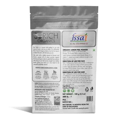 Sorich Organics Lemon Peel Powder - 100 Grams - 100% Pure And Natural Dry Powder For Face Skin Whitening And Hair