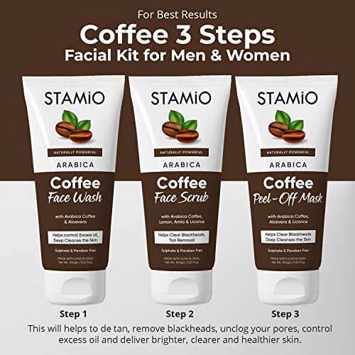 For best results Try 3 Steps Coffee Facial Kit: STAMIO Coffee Face Wash Coffee Scrub and Coffee Peel Off . This will helps to de tan remove blackheads unclog your pores control excess oil and debrighter clearer and healthier skin.