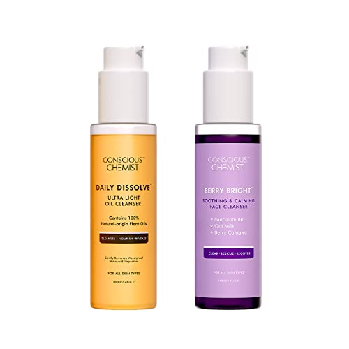 Conscious Chemist Brightening Double Cleansing Kit | Oil Cleanser & Pore Refining Face Wash | Niacinamide & 100% Plant Origin Oils | Vegan & Cruelty Free | Pack of 2
