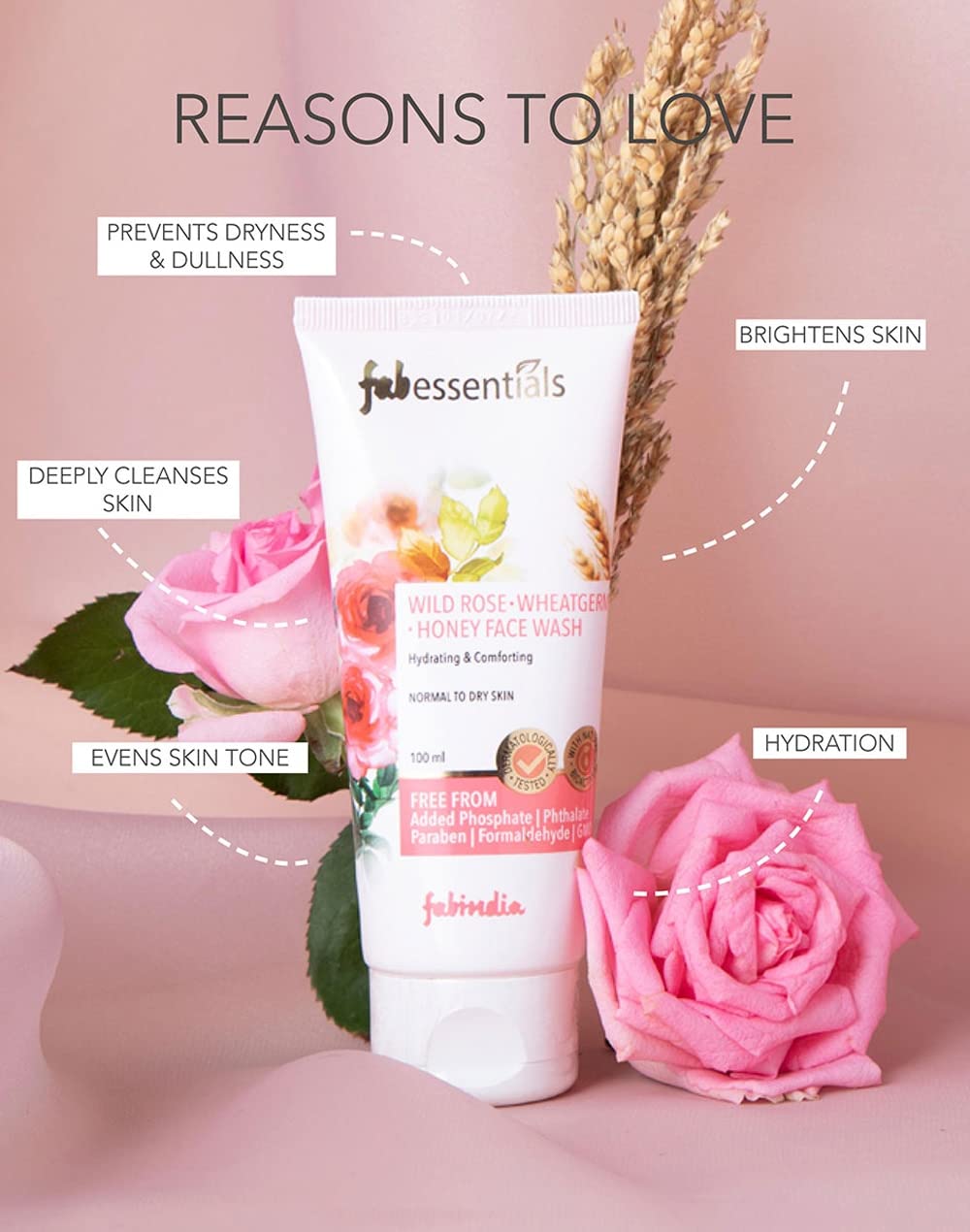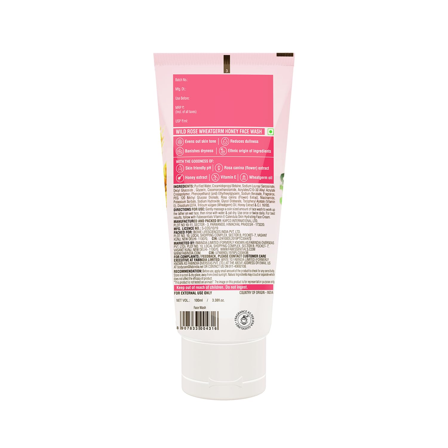 Fabessentials Wild Rose Wheatgerm Honey Face Wash | 100% Organic Steam Distilled Rose Water |Refreshing Hydrating & Comforting | Reduces Dryness & Dullness |100 gm