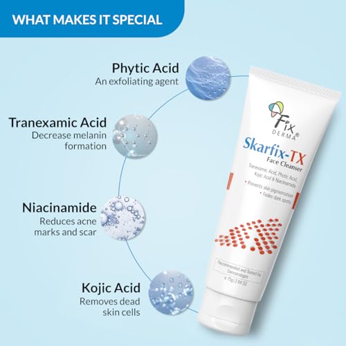 Fixderma Skarfix -TX Face Cleanser with Tranexamic Acid, Kojic Acid & Niacinamide | Kojic Acid Face Wash | Pigmentation Face Wash for All Skin Types - 75gm