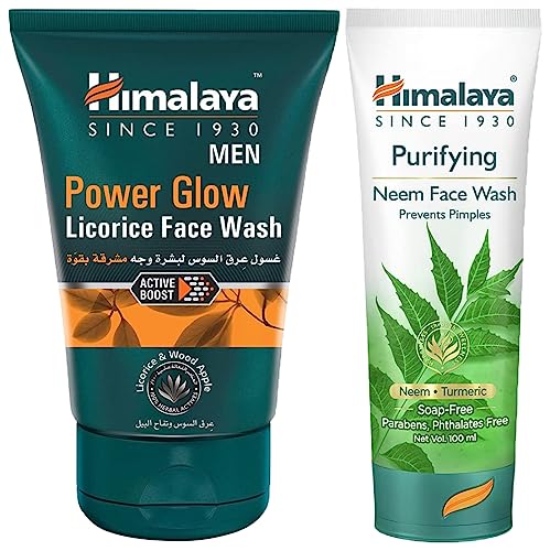 Himalaya MEN Power Glow Licorice Face Wash, 100ml & Himalaya Herbals Purifying Neem Face Wash, 100ml