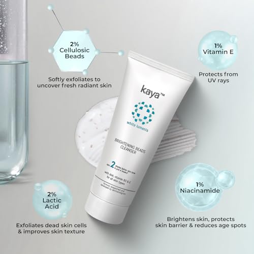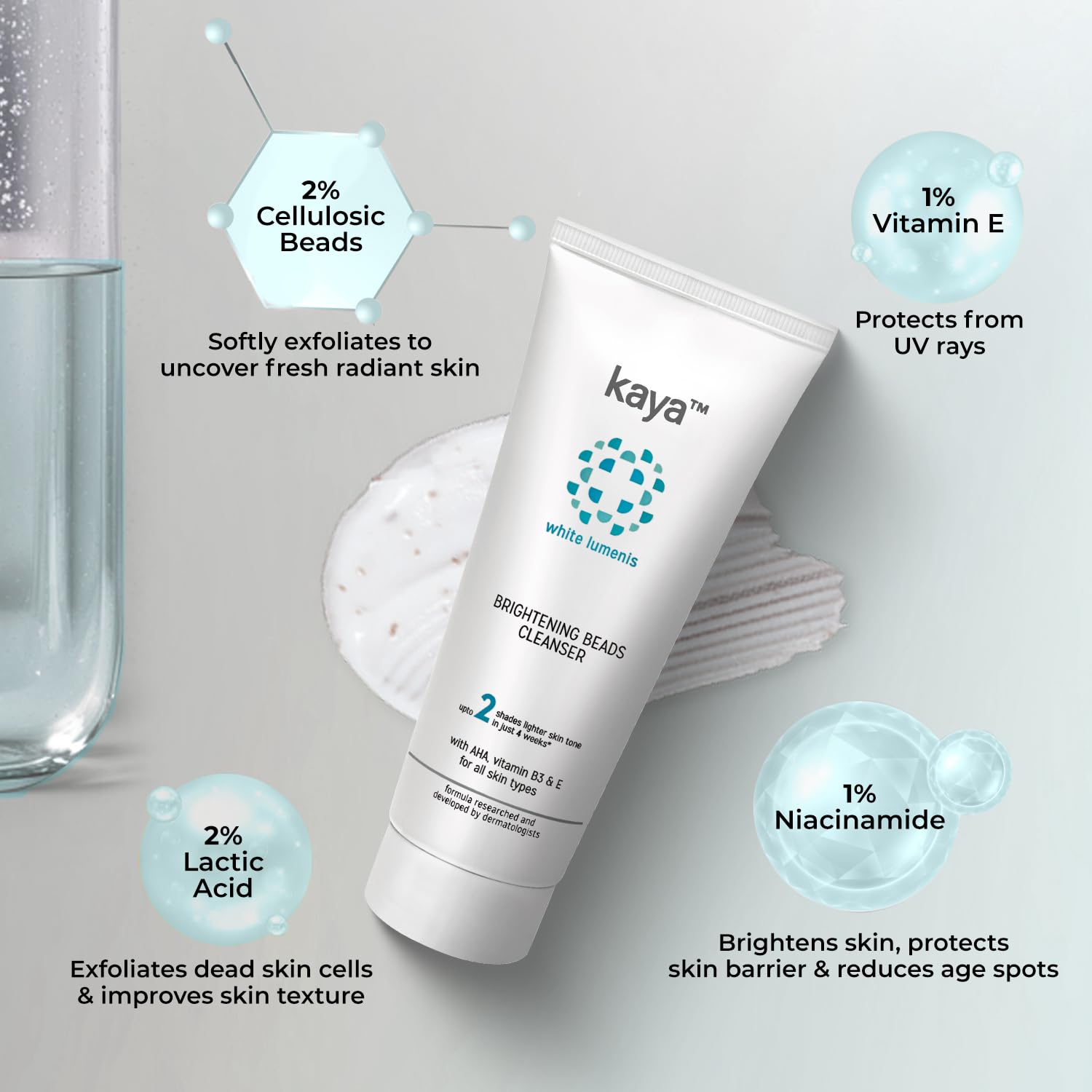 Kaya Brightening Beads Cleanser | With AHA Niacinamide Vitamin E | Daily Use Exfoliating & Brighteni